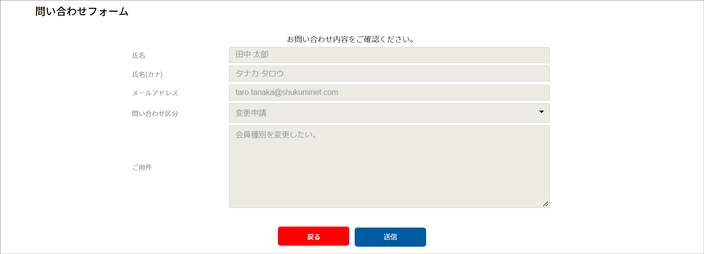 ⑥お問い合わせ内容を確認し、「送信」をクリックします。