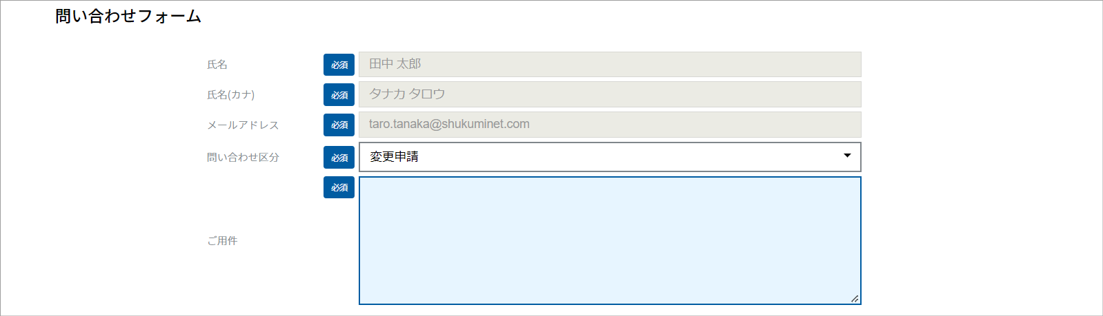 ④『問い合わせフォーム』画面が表示されます。